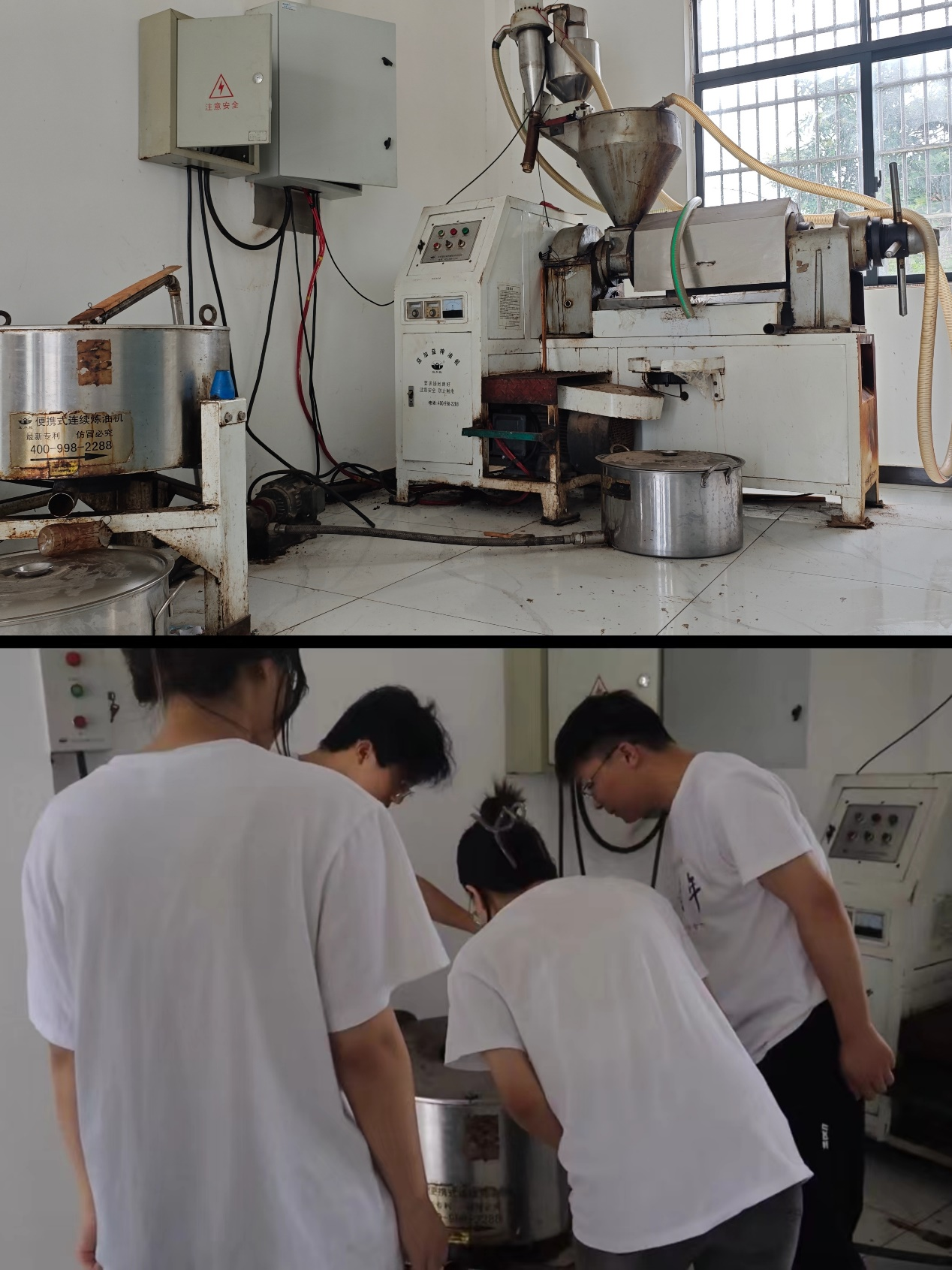 党的二十大报告提出“加快建设农业强国”,这是党中央着眼全面建设社会主义现代化国家大局,立足中国“三农”实际,在全面推进乡村振兴征程上做出的重大战略部署。6月29日早上8时,南昌应用技术师范学院电信学院“扶苏之翼”实践队来到了江洲镇官场村的榨油工作区间,开展了新型榨油工艺的学习教育。