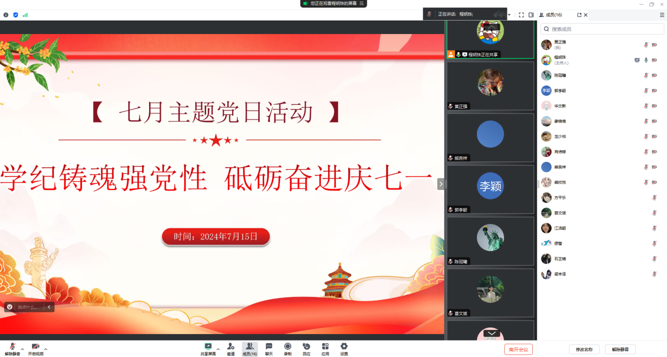 为庆祝中国共产党成立103周年,弘扬伟大建党精神,贯彻落实新时代党的建设总要求,进一步健全全面从严治党体系推动党纪学习教育走深走实,Beat365亚洲版官网第二党支部于7月15日召开线上会议,开展了“学纪铸魂强党性 砥砺奋进庆七一”主题党日活动。