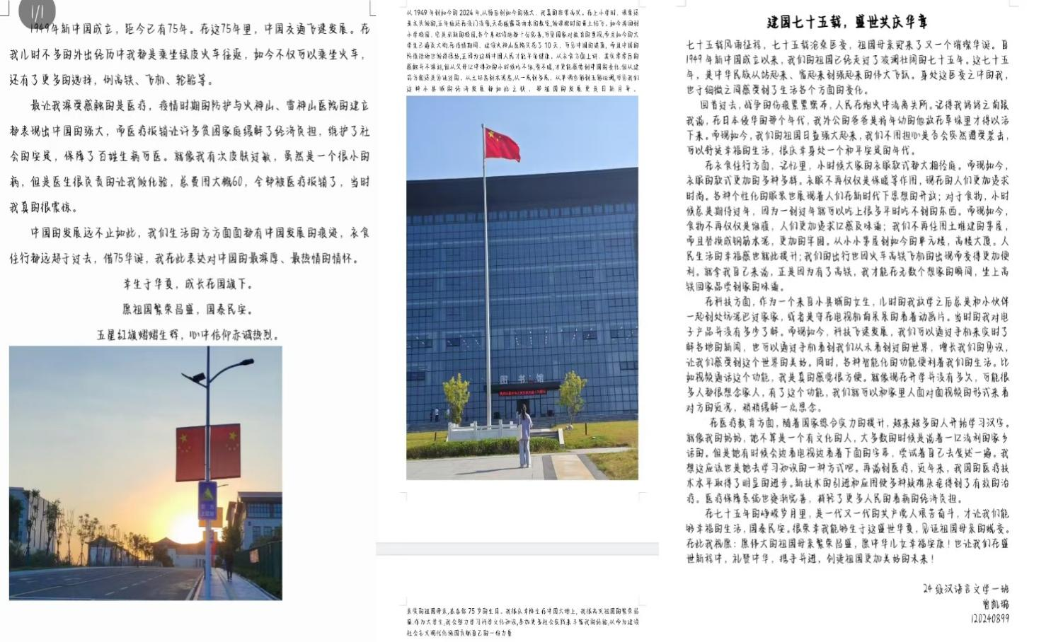 为了热烈庆祝建国75周年的到来,响应新时代爱国主义教育的号召,同时丰富应师青年们的课外生活,南昌应用技术师范学院Beat365亚洲版官网学生会在2024年9月25日至30日举办主题为“把日新月异的中国写下来”的线上征文活动。