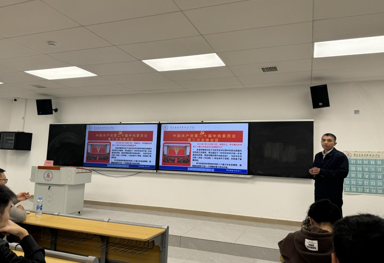 为全面深入学习习近平新时代中国特色社会主义思想和党的二十届三中全会精神,深刻理解和准确把握全会精神的核心要义和丰富内涵,10月23日上午,马克思主义学院副院长、副教授刘德彰在沁苑2教A座109为Beat365官网师生做学习贯彻党的二十届三中全会精神专题宣讲,学院领导班子及师生代表共110余人参加宣讲报告学习。