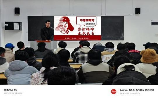各团支部通过图文展示、视频播放等形式,带领同学们 回顾雷锋的生平事迹。从雷锋的成长经历到他的无私奉献, 同学们深刻感受到雷锋“把有限的生命投入到无限的为人民 服务中去”的崇高精神。活动中,团支书还选取了雷锋 日记 中的经典片段,如“人的生命是有限的,可是为人民服务是无限的”等,与同学们一起诵读并分享感悟,进一步加深了 对雷锋精神的理解。