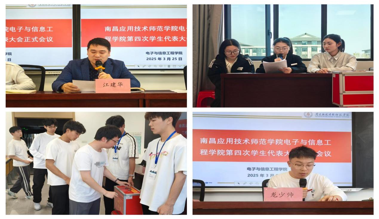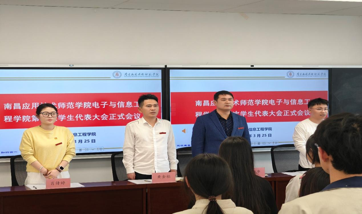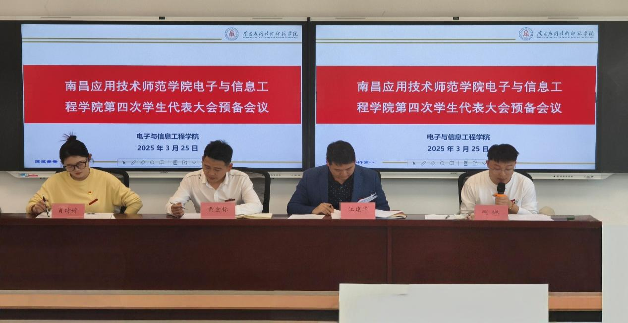 2025年3月25日下午,南昌应用技术师范学院Beat365亚洲版官网第四次学生代表大会在沁苑2教B座B209召开。大会由分团委书记龙少帅主持,学院党总支书记江建华、副书记黄金标、学工科科长肖诗婷出席会议,160名学生代表参与本次会议。