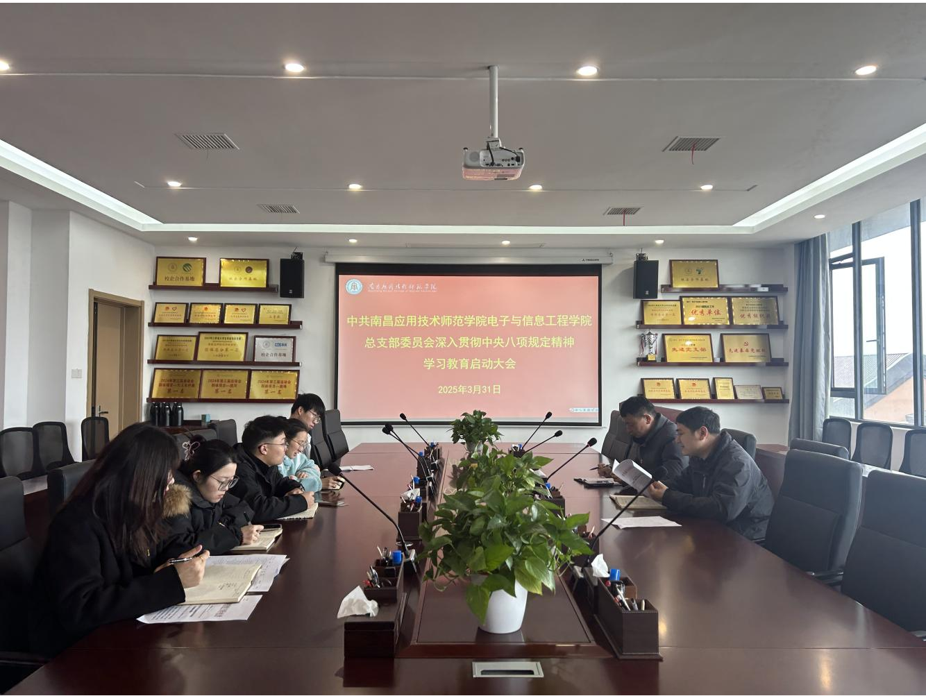 3月31日,Beat365官网党总支召开深入贯彻中央八项规定精神学习教育部署启动大会。会议由党总支书记江建华主持,该学院领导班子、党总支委员以及科级以上干部参加会议。