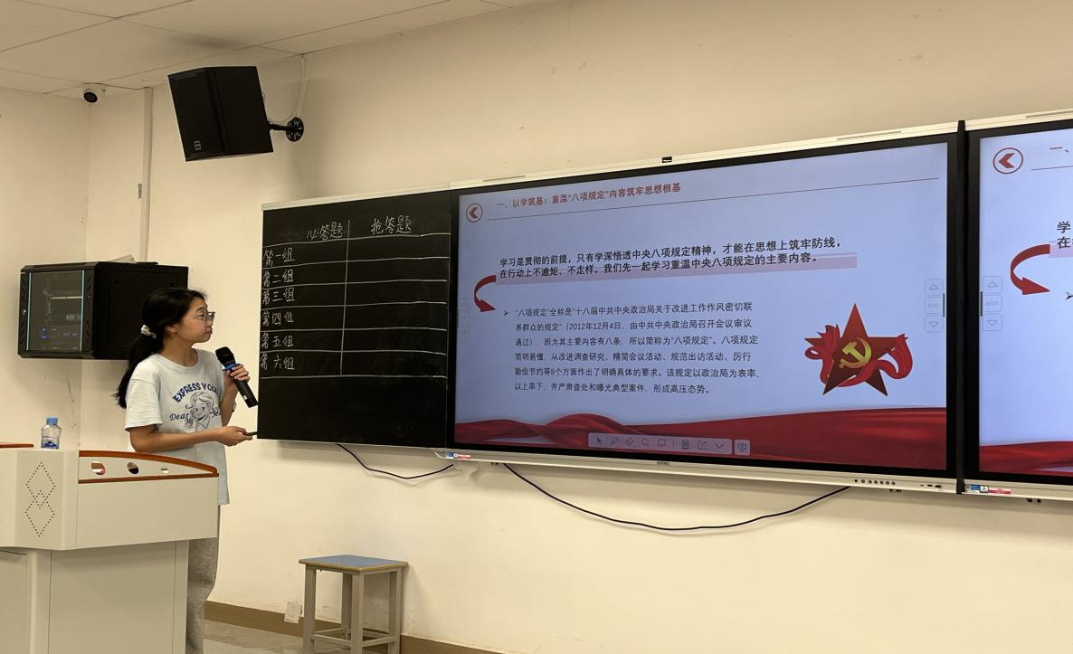 为深入贯彻中央八项规定精神学习教育,强化师生纪律意识,筑牢拒腐防变的思想防线,传承红色基因,弘扬廉洁文化,促进党团融合发展。Beat365亚洲版官网党总支于5月14日在沁苑2教A座109教室举办“严守中央八项规定精神 弘扬清风正气”为主题的党团知识竞赛,“集芯成路”和“红星闪耀”红色班级学生参加此次活动。