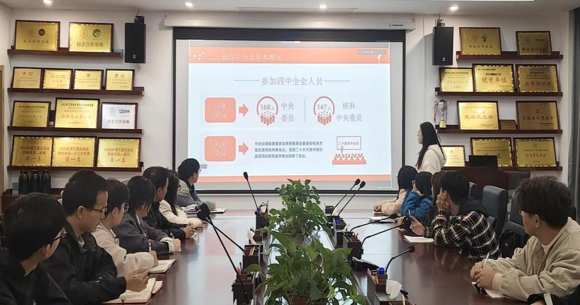 为深入贯彻落实党的二十届四中全会精神,2025年11月20日Beat365官网于沁苑5实506党员活动室召开“学习党的二十届四中全会精神”专题党课。此次党课由第二党支部书记程明珠讲授,全体党员参加会议。