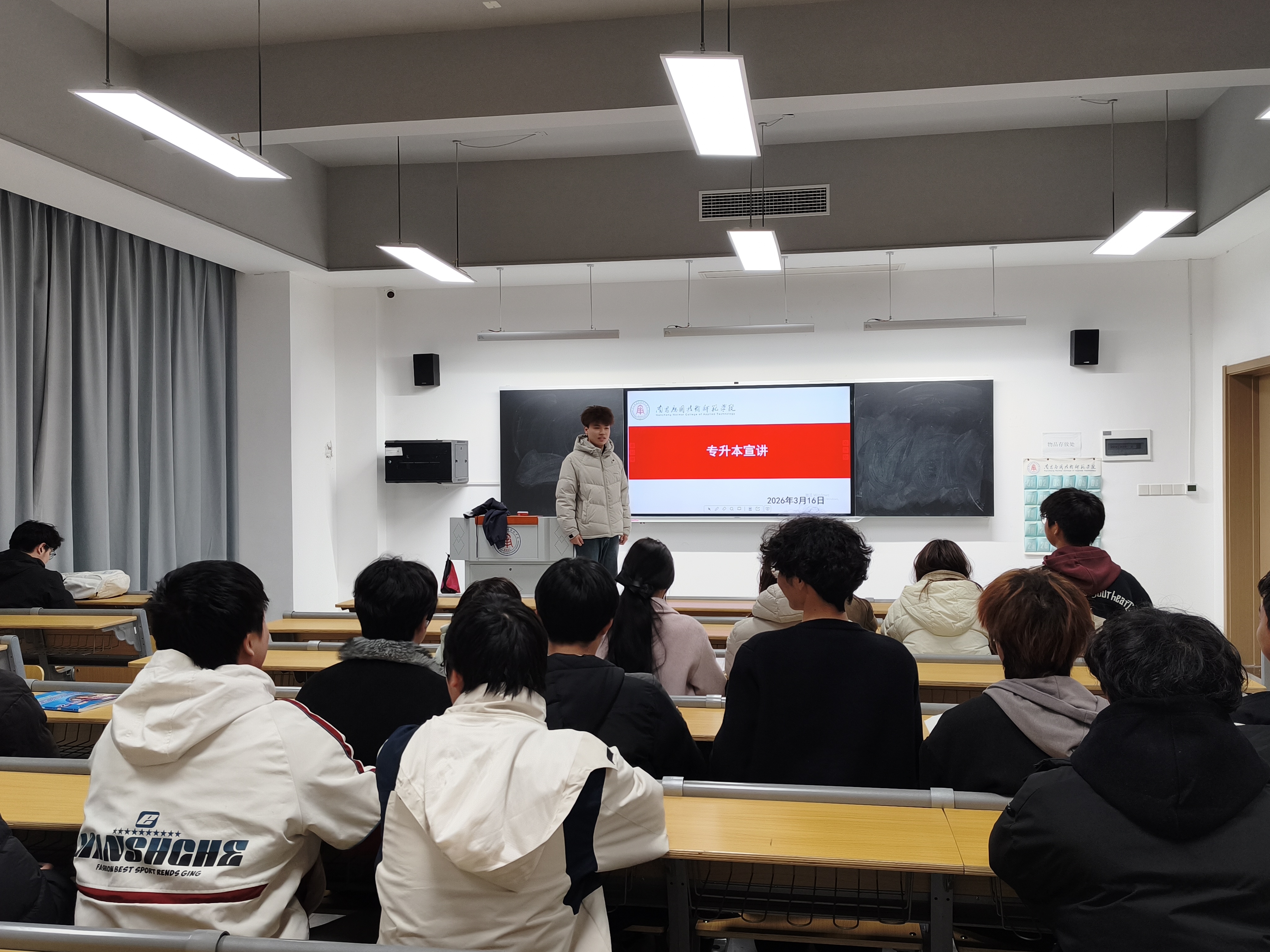 分享会上,辅导员首先发言,强调了专升本对专科学生未来发展的重要意义,鼓励新生们树立长远目标,从大一开始规划学业,珍惜时光、脚踏实地,同时介绍了学院对专升本学生的帮扶政策,为学子们注入信心。学长结合自身专升本备考经历与当前本科学习体验,从多维度分享实用经验。围绕专升本政策解读、备考规划、科目复习、心态调节等核心话题,用通俗易懂的语言拆解备考秘籍,提醒新生重视英语、数学等基础学科的积累,合理分配学习时间,养成高效的学习习惯。并坦诚分享了自己备考过程中的困惑与克服方法,结合专业特性,推荐了靠谱的备考资料与学习资源,鼓励学弟学妹们拒绝躺平、主动探索,寻找志同道合的学习伙伴,互相监督、共同进步。他们表示,专升本不仅是学历的提升,更是自我成长的历练,只要坚定信念、科学备考,就能实现梦想。