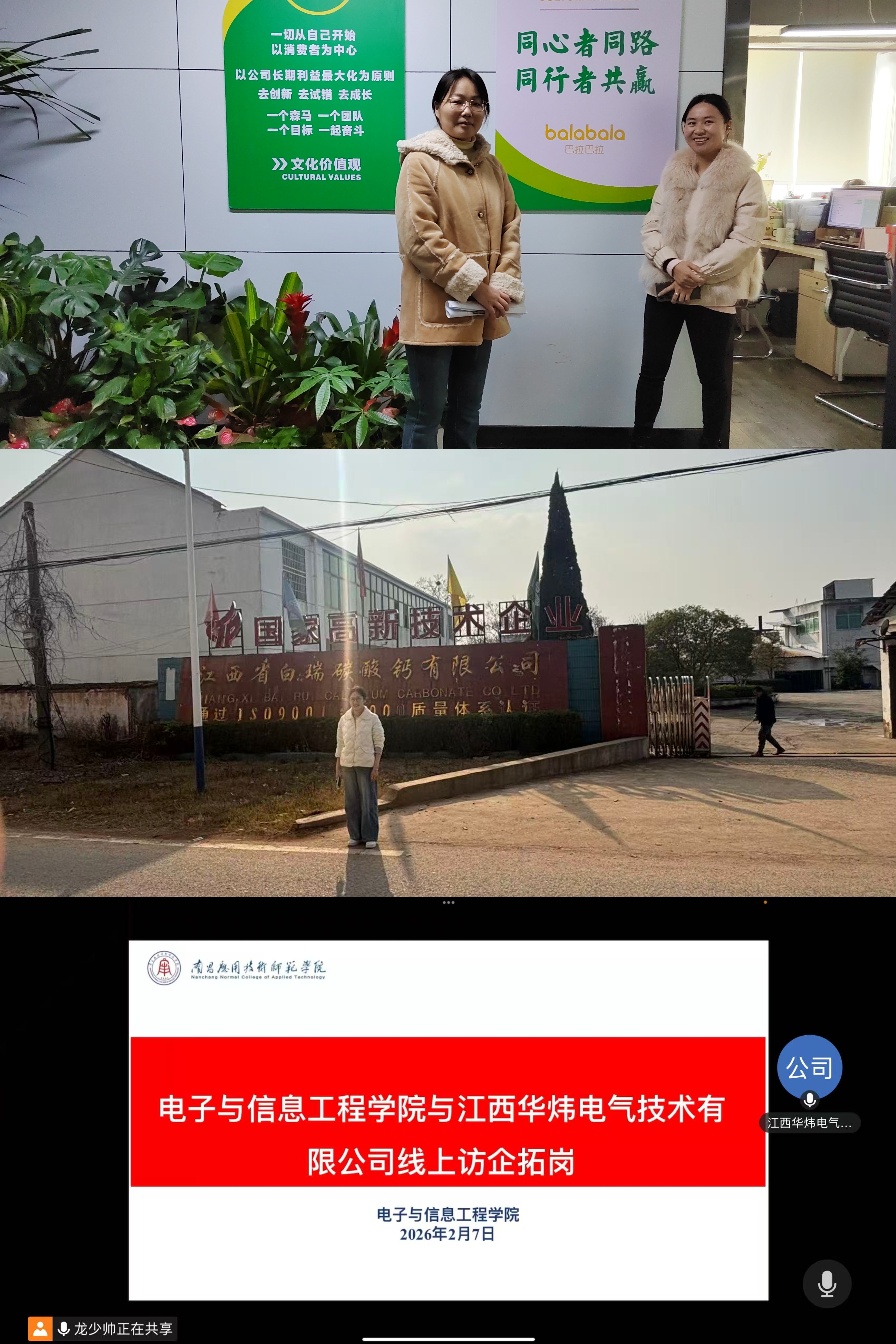 为进一步深化产教融合、校企合作,精准对接行业人才需求,拓宽毕业生就业渠道,推动学院人才培养与产业发展同频共振,Beat365官网教师前往江西华炜电气技术有限公司、江西省白瑞碳酸钙有限公司,庐山港华燃气有限公司,庐山市华林康顺石材有限公司,南昌市棋月服饰有限公司开展定向访企、园区走访专项活动,实地与线上相结合调研企业发展现状,深入洽谈校企合作事宜。